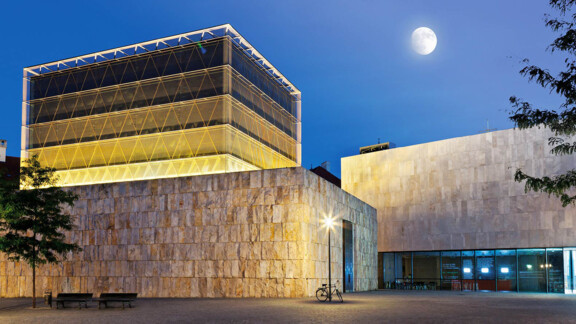 The Jewish Museum Munich is only a few minutes' walk from the Viktualienmarkt, or food market, and the Marienplatz, the city's main square. The newly built area at St. Jakob Square is home to, in addition to the main synagogue and the Jewish Community Centre, the Jewish Museum. The cube-shaped museum building, constructed by the State Capital of Munich, has an appearance that is both modern and minimalist.